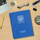 Cuaderno moderno, profesional y personalizado para que tus empleados tomen notas y las mantengan organizadas. Este diseño combina un fondo azul moderno y animado con una tipografía blanca simple y fácil de leer siempre profesional. El diseño versátil se adapta a cualquier industria o tipo de negocio. Además, se transfiere fácilmente a otros suministros comerciales, accesorios de oficina y productos promocionales.