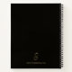 La libreta moderna presenta un diseño minimalista en una paleta de colores clásica en negro y dorado. El logotipo de las iniciales del monograma inicial se presenta en una escritura moderna enmarcada en un óvalo dorado cepillado. El nombre de la empresa personalizada y el eslogan se presentan en el tercio inferior en una fuente simple y elegante. Un medallón de monograma minimalista complementario en la parte posterior con espacio para su sitio web o texto de su elección. Una libreta monogramada moderna y sencilla para su espacio de trabajo. Ideal para contadores, consultores, abogados, agentes inmobiliarios, entrenadores corporativos o ejecutivos, o cualquier otro profesional de negocios, o un regalo de oficina o para clientes considerado.