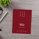 Fondo rojo y texto blanco. Personalice y agregue su logotipo, iniciales de monograma, nombre y título. Su logotipo tanto en el frente como en la parte posterior. Espacio para la dirección de su sitio web en la parte posterior.