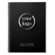 Personalice este diseño de cuaderno moderno simple reemplazando el logotipo de muestra que se muestra en la plantilla de diseño con la imagen de su logotipo. Marque su negocio, club, hobby u otra actividad fácilmente con productos de calidad. Se muestra aquí con un sofisticado fondo negro moderno, puede cambiar el color seleccionando "editar con la herramienta de diseño" que abre el editor completo para cambiar los colores de fondo y mover el texto. Personalice la plantilla de texto con el texto deseado.