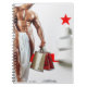 Navidades de SlipperyJoe comprando un árbol de espirales de papel blanco coronado por una vibrante estrella roja que golpea el tema de las vacaciones atrevida banda de escarlata corriendo horizontalmente sexy hombre muscular de pecho parcialmente vestido hoja de cama artística sin camisa regalo de tipo bolsos de compras estacionales regalos de orgullo gay alegrías LGBTQIA