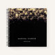 El bloc de notas negro de moda incluye cadenas de luces de cuerda doradas con un efecto bokeh borroso. Personalice con dos líneas de texto personalizado en la parte inferior en letras blancas modernas.