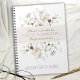 Este diario de oraciones personalizado tiene flores silvestres verdes, doradas y moradas junto con el versículo de la Biblia Luke 1:45 Bendita es la que ha creído que el Señor cumpliría Sus promesas para ella.