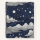 Nubes suaves y estrellas plateadas brillan en un cielo azul medianoche, creando un paisaje nocturno sereno y luminoso.