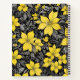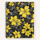 Un patrón vibrante y elegante de flores amarillas sobre hojas plateadas y fondo negro que aporta un toque de energía y sofisticación.