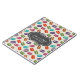 Una libreta personalizada con un patrón adorable de macarons en muchos colores diferentes con un tenue patrón de lunares detrás. Un marco decorativo gris y blanco con aspecto vintage con tu texto dentro.