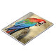 Macaw de ala verde retrato (Ara chloropterus) sobre la percha y la fruta