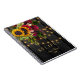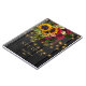 Flores de sol y rosas rústicos gran ramo, dos corazones dorados y elegante guión de tipografía de oro falso en un fondo de madera oscura de grano con cuerdas de luces intermitentes que hacen de una bella cocina familiar personalizada un libro de sake.+++++++++++++++++++++++++ Es un regalo hermoso para una novia, para su propia cocina o un regalo ¡por un chef!