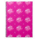 This notebook features a vivid magenta background decorated with soft white and blush‑pink circular dot clusters, creating a dynamic, contemporary geometric motif.