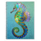 Caballo de mar mágico dorado en hermosos tonos de joyas, turquesa, aqua, verde, morado con escalas y bordes dorados. Un cuaderno divertido, un diario y un compañero para los amantes del océano. Vea la coincidencia de accesorios y tarjetas de juego. Un regalo perfecto para los amantes del océano.