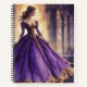 Una princesa con un vestido de gala violeta y dorado, un diseño que combina la elegancia y la sofisticación en una obra de arte en acuarela.