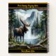 Un majestuoso alce se alza con gracia cerca de una serena cascada, rodeada de árboles y montañas escarpadas bajo una suave luz matutina, que encarna la tranquilidad y belleza de la naturaleza. NOTA Para Cambiar Los Colores De Texto O Borde Utilice La Herramienta Editar Utilizar Diseño