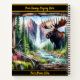Un alce se alza con orgullo cerca de un arroyo sereno, rodeado de pinos exuberantes y cascadas en cascada. El paisaje vibrante captura la esencia de la belleza de la naturaleza. NOTA Para Cambiar Los Colores De Texto O Borde Utilice La Herramienta Editar Utilizar Diseño