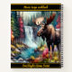 Un majestuoso alce se alza con orgullo cerca de una cascada que se precipita en medio de una vibrante vegetación otoñal. El entorno tranquilo captura la belleza de la naturaleza en plena floración. NOTA Para Cambiar Los Colores De Texto O Borde Utilice La Herramienta Editar Utilizar Diseño