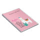 El último mensaje de aliento de Mama Llama es... "Sé un faro que muestra el camino a puerto seguro". Mama Llama es una llama blanca encantadora con una cabeza floral y una silla trenzada colorida... además de una tonelada de sabiduría para dar. En este cuaderno, Mamá se sitúa sobre un fondo rosa bonito y la escena está adornada con una planta suculenta verde azulada de dos tonos. Parte de la colección Mama Llama Says. Personaliza con el texto que elijas.