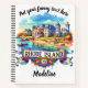 Una impresionante mansión ofrece vistas a las brillantes aguas de la isla de Roda. La vegetación exuberante rodea la arquitectura histórica mientras los barcos atracan en la playa, encarnando una escapada de verano perfecta. NOTA para cambiar los colores del texto Utilice la herramienta Editar usando el diseño