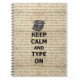 Opinión moderna sobre el popular lema de "mantener la calma" en un fondo de papel de época