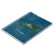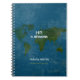 Un moderno bloc de notas azul escolar o de oficina, personalizado con tu propio nombre (o compañía, marca...), iniciales y líneas personalizados de texto (asignatura especial)... y con un mapa verdoso del mundo.