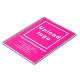 Cuéntame que puedes personalizar la portada. Puede poner su nombre de negocio en él y utilizarlo para crear conciencia de marca. También puede ofrecerlo como artículo de regalo, incluir en sus materiales de marketing para promocionar su negocio o incluir en sus productos promocionales para promocionar su marca a clientes o clientes. El diseño son textos blancos sobre fondo rosado. Para personalizar de la portada de este bloc de notas, cargue el logotipo de su empresa, escriba el nombre de su empresa o empresa, dirección, número de teléfono, correo electrónico y página web o de red social. Compruebe la apariencia después de cargar el logotipo y escribir textos. Si la apariencia le resulta agradable, puede realizar su pedido ahora. Si necesita cambiar el tamaño y mover el logotipo y los textos para que encajen en la cubierta o de acuerdo con la apariencia que prefiera, por favor cambie la herramienta de diseño. También puede realizar otros cambios en la herramienta de diseño, como cambiar el color de fondo, el color de fuente y el estilo de fuente. Una oficina de personalizable y un suministro escolar que puedes usar para promocionar tu negocio.