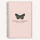 Un cuaderno de moda y niñera con un diseño de mariposa color rosa bonito, azul acuático y negro sobre un fondo rosa rubor. Creado para esteticistas, maquilladores, peluqueros, masajistas e instructores de yoga.