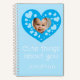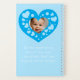 Un cuaderno con un marco de foto en forma de corazón azul para agregar tu foto personal. Un gran recuerdo para escribir las cosas lindas sobre tu hijo.