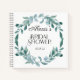 Elementos: pintura de acuarela, marco completo, vegetación, hojas, eucalipto, tipografía serif. Colores: verde, azul, salvia, menta, aqua y blanco con tipografía negra cálida. Temas: jardín, naturaleza, botánico, romántico, al aire libre, caprichoso, follaje, ligero y brillante, vintage, elegante. Colección: Conjunto de boda de eucalipto verde azul blanco. Tipo de producto: Libro de invitados