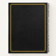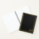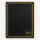 El cuero negro con un sencillo marco dorado hace un cuaderno hermoso y elegante que es perfecto para la oficina, en la escuela o en casa. Un pequeño círculo en la parte delantera sostiene tu monograma.