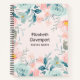 Un cuaderno de espiral personalizado con un elegante borde floral. Flores y hojas en rosa y verde.