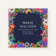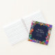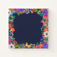 Bonito bloc de notas cuadrado que puedes personalizar con tu nombre y el propósito del bloc de notas en bonito blanco-negro dentro de un marco de flores. Las flores dibujadas a mano son rosa, púrpura, naranja, amarilla y azul y crecen entre bayas y vegetación sobre un fondo azul oscuro.