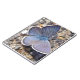 Pequeña mariposa azul muy lindo sentada sobre grava gris.