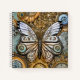 Este bloc de notas presenta un estilo de steampunk con una mariposa, relojes vintage y los engranajes interiores de los relojes en tonos azul claro y marrón.