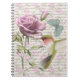 Modelo de flores rosado beige y pequeño ligero bajo fondo antiguo del texto escrito. Ofrece dibujos botánicos del vintage precioso del victorian. Una flor color de rosa púrpura, una mariposa y un colibrí. Perfeccione para la era del vintage y del victorian, los amantes del animal y de la botánica.