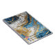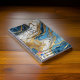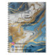 Cuaderno con un hermoso diseño de mármol azul, oro y blanco que le da un aspecto lujoso y moderno.