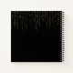 El bloc de notas de moda cuenta con un fondo negro rico adornado con cadenas verticales de falsas luces de cuerda de Relieve metalizado dorado en cascada desde la parte superior. Personalice con dos líneas de texto personalizado a lo largo de la parte inferior en letras blancas clásicas.