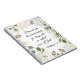 Cuaderno de citas inspiradoras cristianas, diario que representa un diseño floral simple con bayas blancas y rojas y vegetación. Presenta una parte de las Bienaventuranzas, la enseñanza querida de Jesús del Sermón de la Montaña, Versículo de la Biblia Mateo 5:9, "Bienaventurados los que trabajan por la paz, porque serán llamados hijos de Dios."