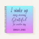 Un cuaderno precioso para mostrar su gratitud, este artículo presenta papel alineado en el interior con un fondo azul y púrpura. "Me despierto cada mañana agradecido por otro día" está escrito con divertida letra cursiva. En la parte inferior se muestra un lugar para introducir su nombre. Puede modificar el interior del papel con una variedad de opciones. Personalice su bloc de notas de gratitud hoy mismo.