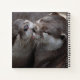 Cuaderno cuaderno de espiral cuadrado con una bonita y romántica foto con 2 nutrias enamoradas. Una otra está lamiendo la cara de la otra nutria, los ojos cerrados parecen tan felices como pueden ser. El texto dice "Te amo como ninguna nutria" con un lindo corazón de doodle. Sobre un fondo marrón oscuro.