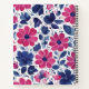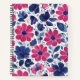 Flores rosas intensas y azules delicadas destacan sobre un fondo blanco, creando un diseño vibrante y elegante. Un toque de pasión y serenidad.