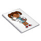 El médico está adentro. Aquí está una niña muy linda que soña con hacer médico. Este diseño muestra a un chica vestido en una capa blanca del laboratorio, un vestido azul y zapatillas de deporte rojas. Ella está sosteniendo una aguja grande y un tablero con un corazón rojo brillante en él. Hace un regalo o una inspiración ideal para el poco médico en su familia.