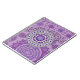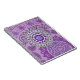 Este diseño de círculo concéntrico plateado y púrpura, inspirado en el mehndi indio y disfraces de anime japonés, presenta capas con pétalos de loto, hojas, paisley y una rueda ornamental alrededor de todo.