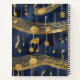 Un patrón de partitura ilustrado en acuarela con notas doradas sobre un fondo azul medianoche, que evoca la magia y la sofisticación de la música nocturna. Un diseño elegante y lujoso para decorar tus espacios.