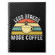A cualquiera que le guste el café y sepa el efecto que tiene en su nivel de estrés le encantará este diseño de café de estilo retro en bolsas, tazas, pegatinas, camisetas, almohadas y más con una taza de café humeante con un texto que diga Menos estrés más café.