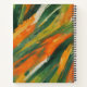 Un remolino dinámico de naranja, verde y plata que combina la calidez y la frescura con un toque metálico. Un diseño abstracto que explora la transformación y la interacción entre colores y texturas.