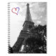 Mi corazón se va a París. Imagen en blanco y negro de la Torre Eiffel con un corazón sencillo en los colores nacionales franceses.