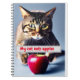 Un diseño distintivo para un cuaderno con una foto de un gato acercándose a una manzana para comer, con la frase "Mi gato come manzanas", pretendo este diseño distintivo para los amantes del gato y de las mascotas. Buen diseño para un gato lúdico, puedes regalarlo a alguien cercano o a un amigo.
