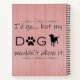 Un portátil perfecto para los que prefieren la compañía de perros y las comodidades de casa. Este diseño de cuaderno incluye un texto que dice "Yo iría...pero mi perro no lo permitiría", con una huella de pata y adornos de silueta de perro en un fondo de madera rosa. También hay artículos de regalo adicionales disponibles con este diseño.