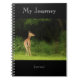 Un cuaderno de espiral como diario con una foto de un ciervo entrando en el bosque