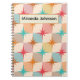 Add warm retro vibes to your office or school stationary with this custom name notebook featuring checkered mid century starbursts on pastel checkerboards in plush pink, pastel blue, taupe and butter orange.