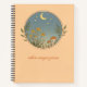 A dreamy circular design featuring a soft night sky with a crescent moon, glowing stars, and a peaceful garden of wildflowers and mushrooms.