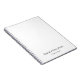 Cuaderno minimalista en blanco y negro, con un diseño clásico y tipografía simple. Con letras negras personalizables, puedes agregar tu propia información. Un complemento elegante para tu negocio o despacho en casa.